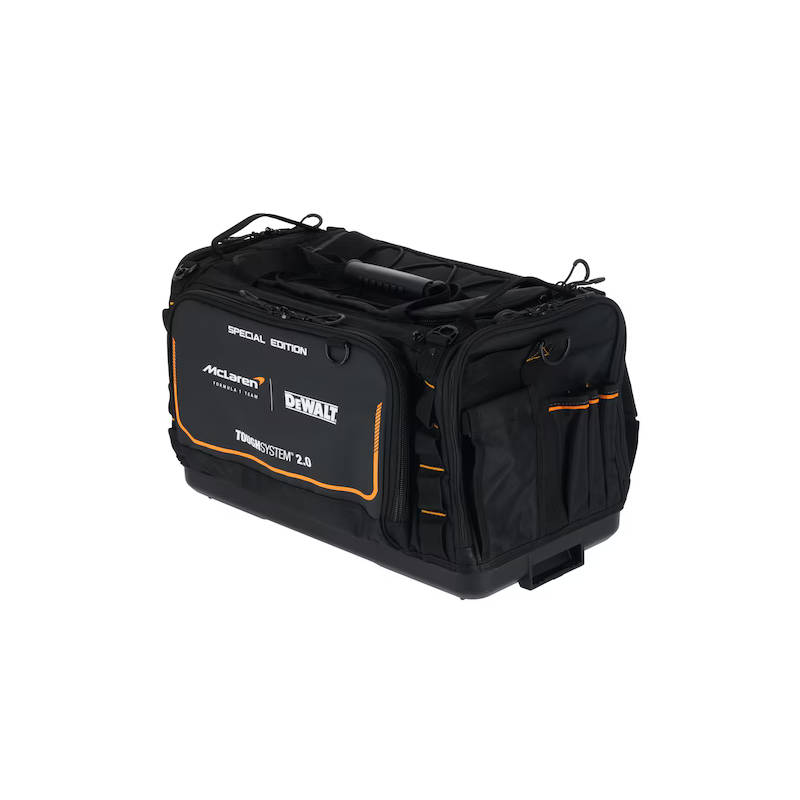 Η DeWALT DWST83542-1 McLaren είναι μια επαγγελματική υφασμάτινη εργαλειοθήκη 22 ιντσών, ειδικής περιορισμένης έκδοσης DeWALT x McLaren, σχεδιασμένη για μέγιστη αντοχή, οργάνωση και ευελιξία σε επαγγελματικά περιβάλλοντα. Είναι πλήρως συμβατή με το σύστημα αποθήκευσης ToughSystem 2.0, προσφέροντας ιδανική λύση για τεχνίτες και επαγγελματίες που απαιτούν άμεση πρόσβαση στον εξοπλισμό τους.